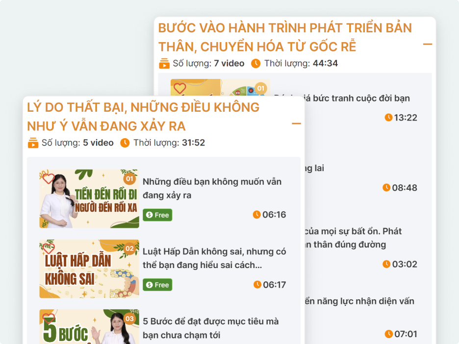 Khóa học hướng dẫn bạn khám phá tiềm thức, gỡ bỏ niềm tin giới hạn, chữa lành cảm xúc. Thay đổi mối quan hệ với tiền và mở rộng tâm thức thịnh vượng. Thiết kế lại bức tranh cuộc đời bạn với “Hành trình chuyển hóa từ gốc rễ”