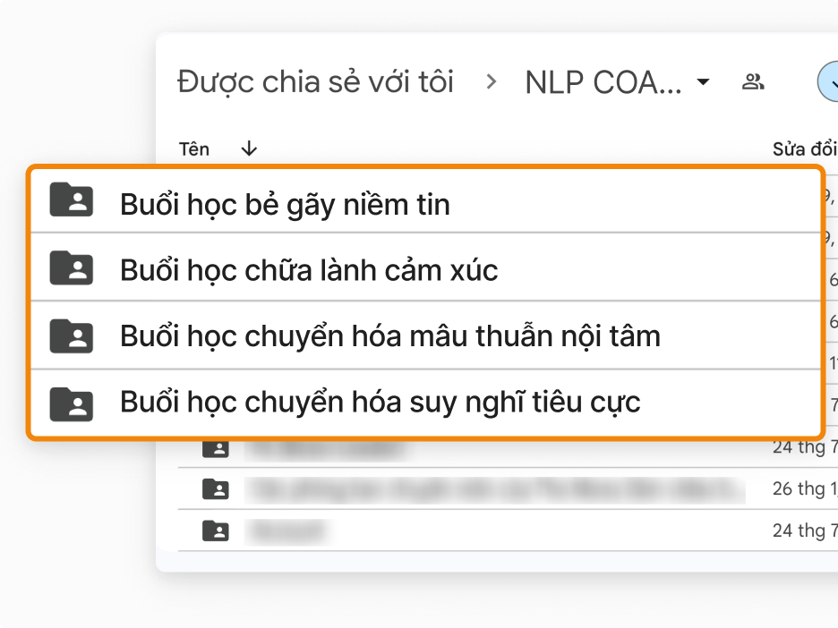 Có. Ngoài nội dung học trực tuyến, học viên còn được tham gia các buổi coaching định kỳ, buổi thực hành chuyển hóa và nhận hỗ trợ trực tiếp từ giảng viên thông qua nhóm cộng đồng học viên.
